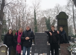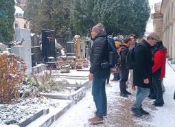 Odpoledne se výprava přesunula na Olšanské hřbitovy. Na rozsáhlém hřbitově naši studenti pomocí navigace nalezli mimo jiné hroby dalších známých osobností – malíře a ilustrátora Adolfa Borna, který se narodil v Českých Velenicích nebo herců Osvobozeného divadla Jiřího Voskovce a Jana Wericha.