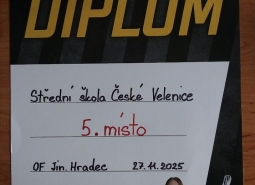 Druhý zápas proti Gymnáziu Dačice skončil 1:5.Čestný gól vstřelil Martin Kalát, což je pro nás pozitivní moment oproti loňskému ročníku.