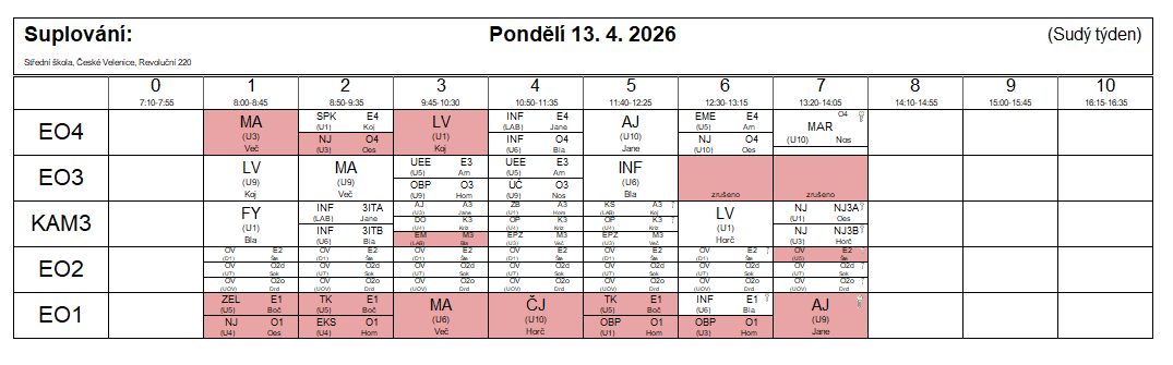 suplování 13.4.2026